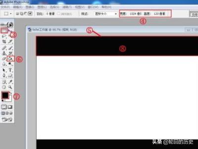 2、新建一名称为“框架”的图层,利用该图层实际整个网页的整体布局。首先选择“矩形选择工具”,然后将矩形的宽度设置为1024,高度设置为80,在文档的上下两侧各框选一部分内容并填充为黑色,从而使整个网页呈现“宽屏幕”效果。