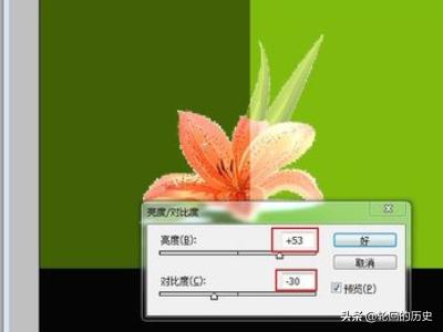 7、然后选择“矩形选择工具”,设置“宽度为624,高度为768,然后在窗口中选择花朵右侧的一部分内容,并调整其亮度和对比度,使花朵的左右两侧呈现明显的对比。