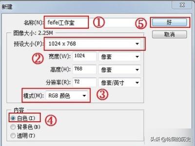 ps网页设计教程?1、打开PS,新建空白文档,名称设置为“feifei工作室”,从预设大小下拉列表中选择 “1024 x 768”,模式设计为“RGB颜色”,内容设置为“白色”,点击“好”按钮完成文档的创建工作。