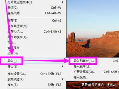 3.点击【文件】→【导入】→【导入到库】,然后在打开的”导入到库“窗口中,选择事先准备好的小人走动姿势图片,全部选择并点击”打开“按钮,导入到库。