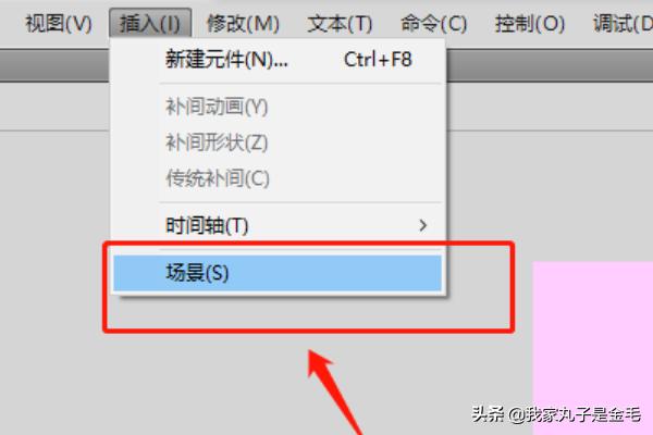 4、如果想要在创建新的场景,我们可以点击展开“插入”菜单栏,选择插入场景。