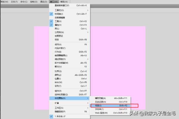 5、或者我们也可以在窗口菜单栏中找到其他面板中的“场景”,选择勾选打开场景面板。