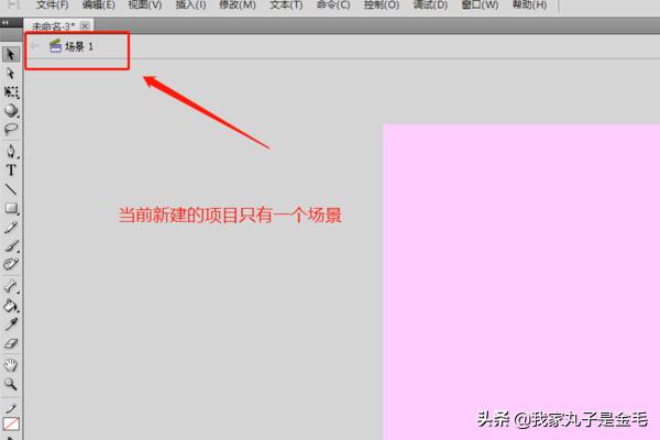 3、创建了这个flash项目之后我们可以在flash软件界面的左上角看到当前项目只有一个场景1。
