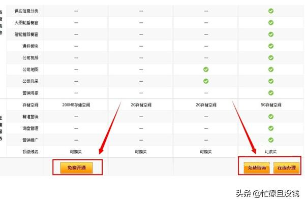 9、鼠标按住右边的滚动条至底部,就看到如图所示,可以“在线开通”与“免费咨询信息”。
