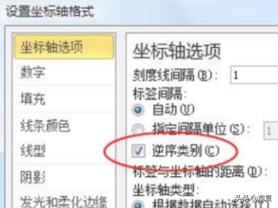 5、在打开的坐标轴选项中勾选“逆序类别”。