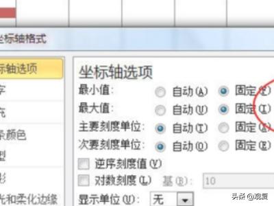 7、在打开的选项设置窗口中将最小和最大值设置为固定数字。