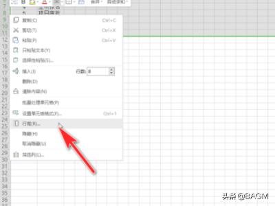 4、然后选择项目共8行,设置行高为50磅,确定。