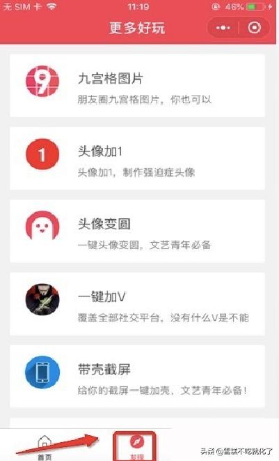 6、底部「发现」还有更多功能,头像上加数字、把方头像变圆等更多功能。