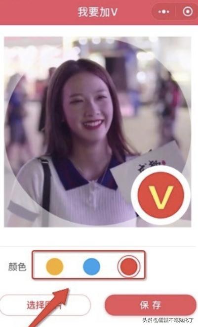 4、比如,我选一个「我要加V」,进来就可以看到自己的微信头像右下角添加了一个「V」字,再底部选择V字颜色,保存后的照片再替换做微信头像就可以了。