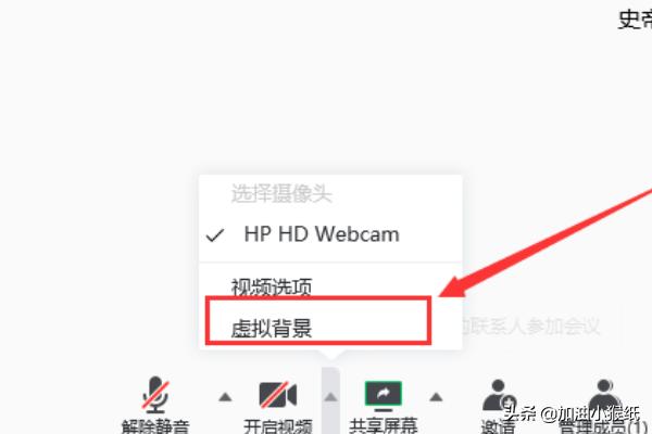 6、第六:进入会议后点击【开始视频】右侧三角选择【虚拟背景】,完成。