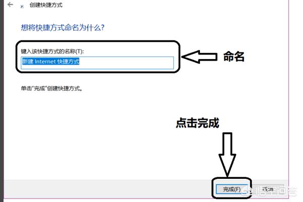 4、然后进入到下一个页面之后,在此页面的方框里面输入快捷方式的命名,点击完成。