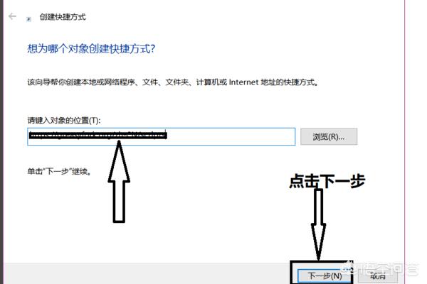 4、点击“快捷方式”,就会弹出一个“创建快捷方式”的对话框。;